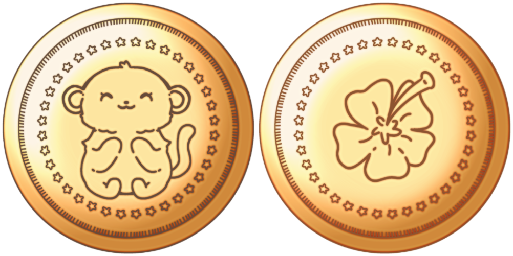Внешний вид жетонов. Передняя сторона с мартышкой, а задняя с цветком.