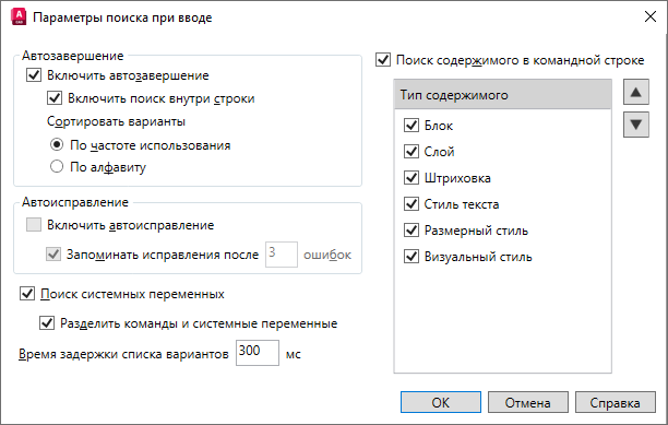 Системные переменные в автокаде