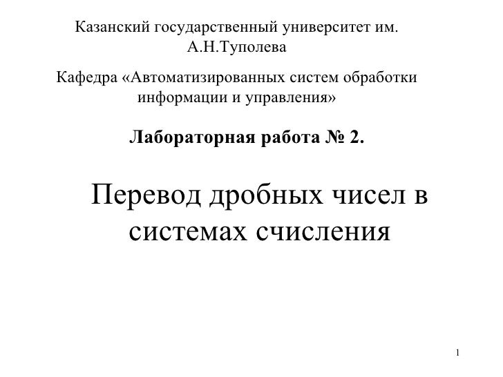Реклама . Практическая работа №1 Системы счисления . Арифметические действия в различных системах счисления . Прямой, обратный и дополнительный код числа . 1 . Цель работы Целью работы является . . .