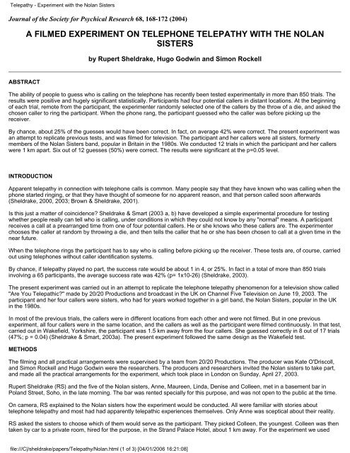 Sister experiment