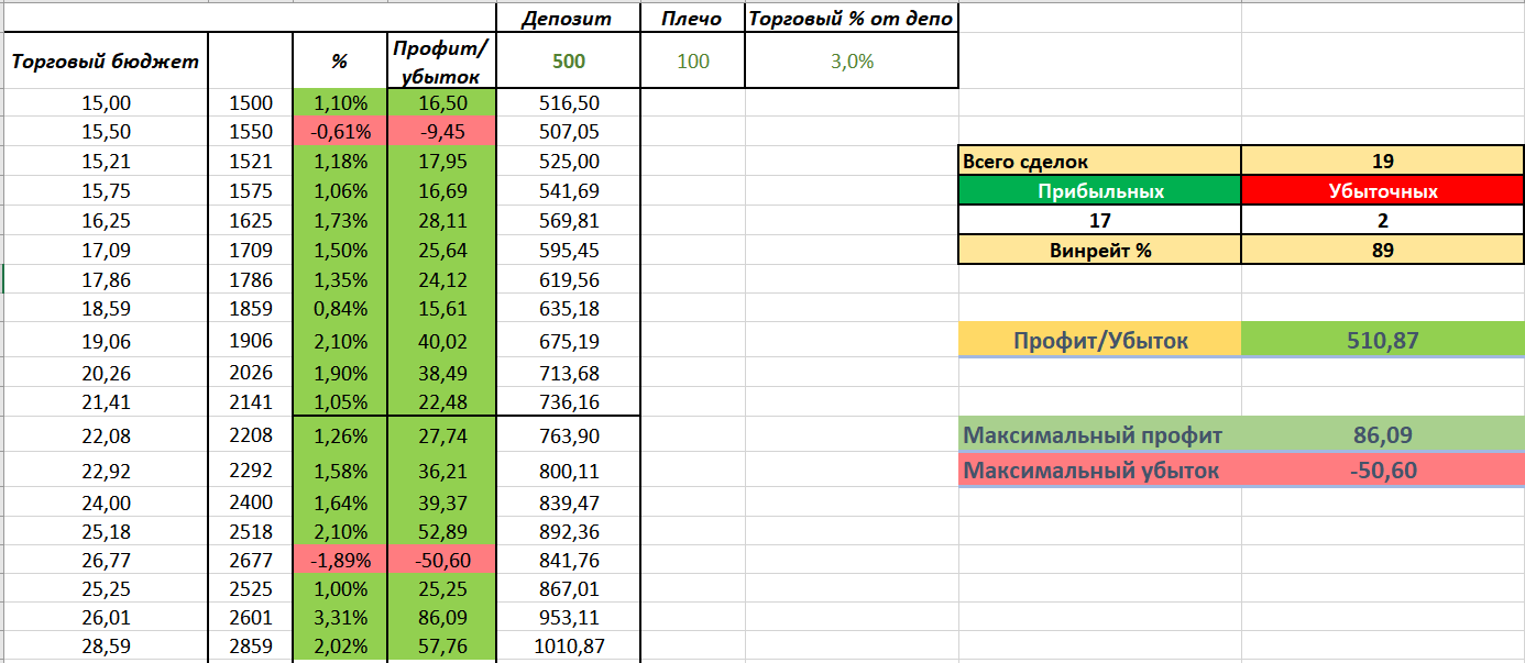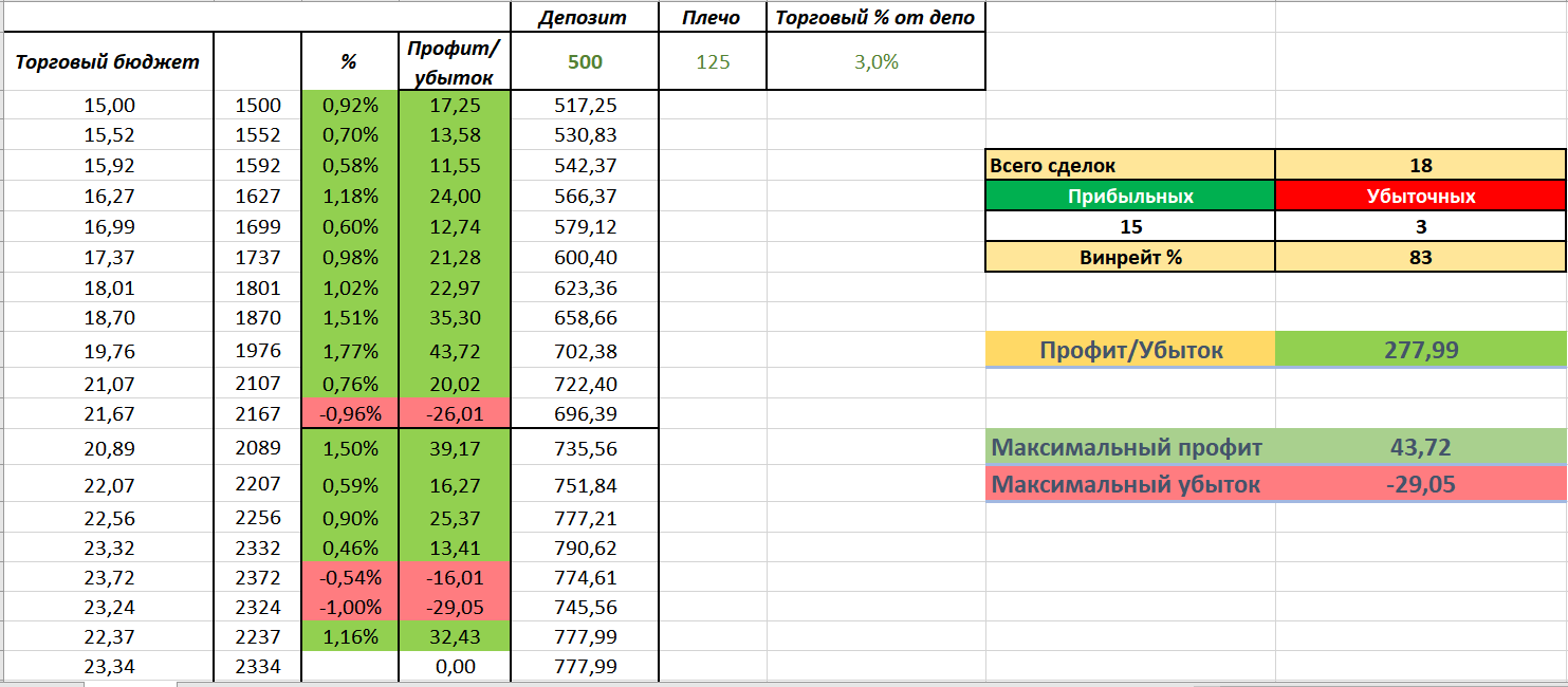 - Чтобы сохранять винрейт (соотношение профитных/убыточных сделок) необходимо торговать строго на одних монетах. Выбрать для себя 2-3 и заходить в каждый сигнал. Не стоит бегать от одной монеты к другой.