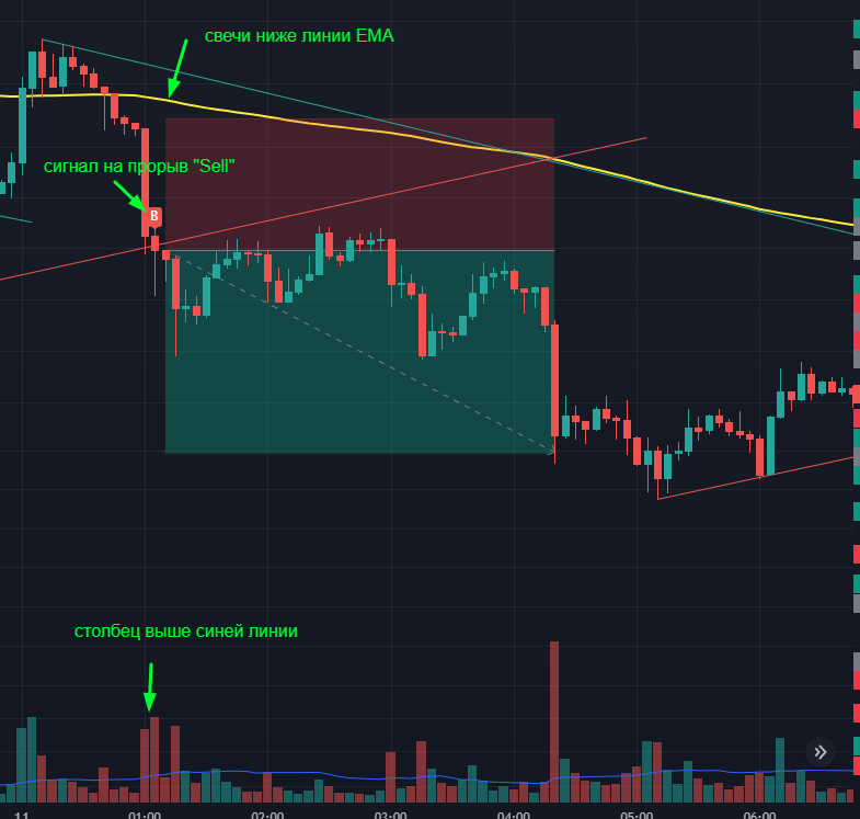 Сигнальная свеча должна закрыться ниже красной линии