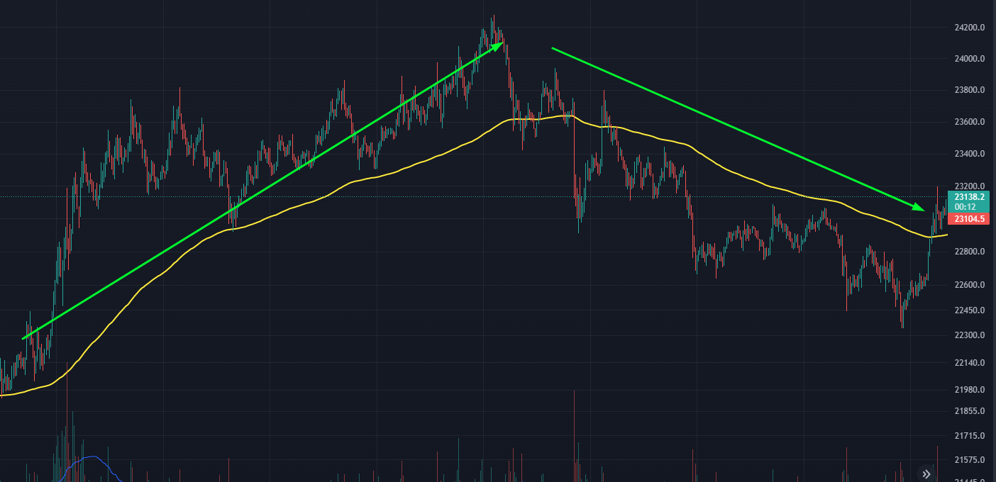 - Индикатор 2 не подтвердил, что мы находимся в нисходящем тренде для открытия шорт позиций.
