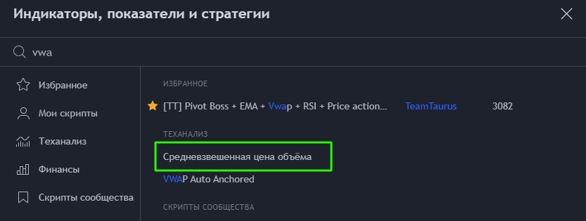 Индикатор №2 «Средневзвешенная цена объёма»