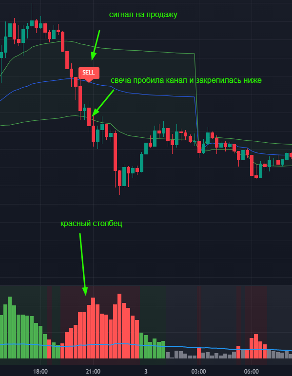 Индикатор 2 – Свеча пробивает канал VWAP / закрыта ниже канала