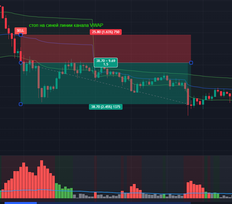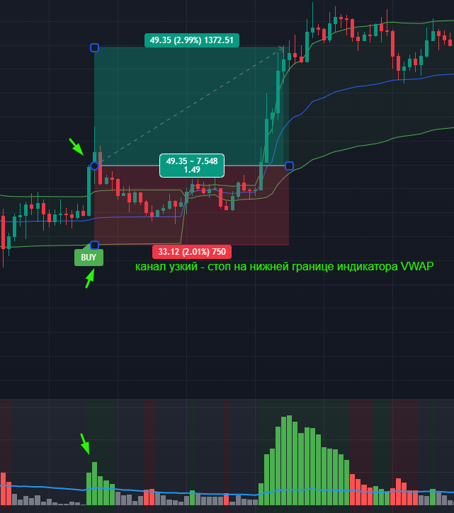 СЛ– Размещаем на синей линии индикатора VWAP или на его верхней границе, если канал очень узкий.