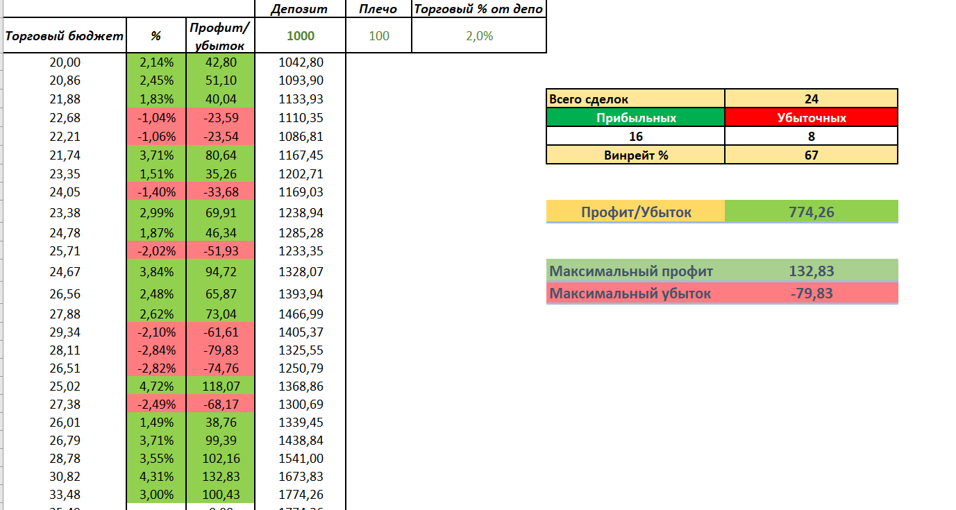 - Максимальный профит: 132,83$