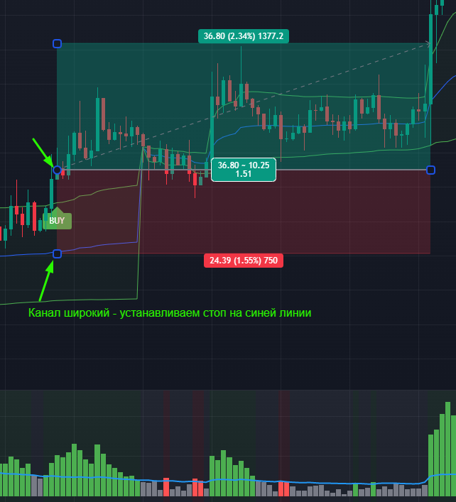 СЛ– Размещаем на синей линии индикатора VWAP или на его нижней границе, если канал очень узкий.