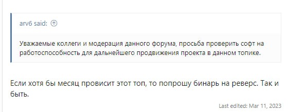 Первый скрин. Один из реверсеров дамаги готов взять бинарь на реверс, если проект проживет месяц, сообщение от 11 марта 2023 года.