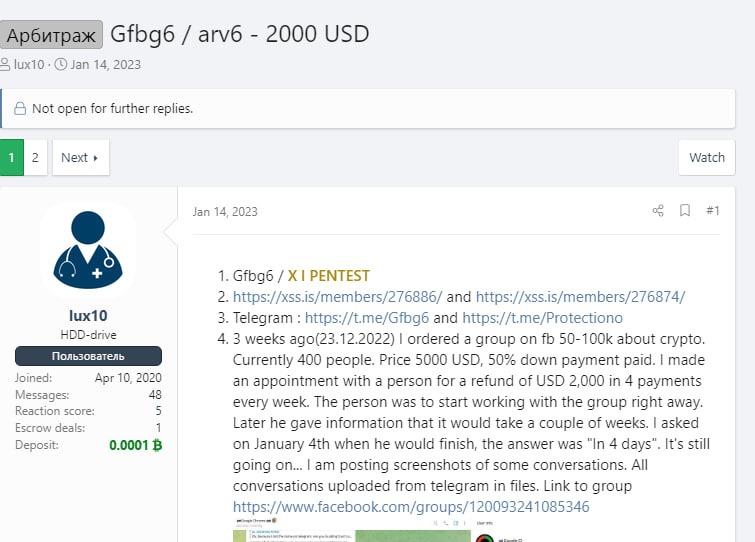 Arv6 принял заказ на привод как минимум 60к аудитории в группу фб. По факту за 3 недели он привел всего 400. Доллары он и не собирался возвращать, пока не получил арбитраж в лицо.