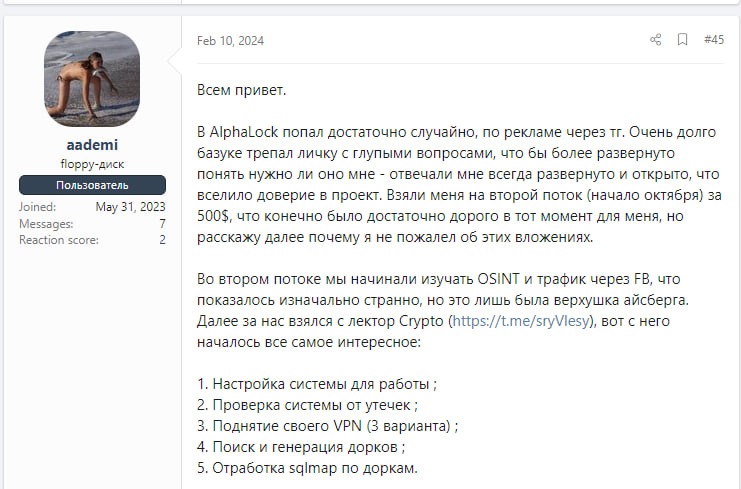 rfm0x …Сегодня у нас важный гость, гений, миллардер, плейбой, отец русской демократии, основатель партнерки шифровальщика alfalock, стиллера im'better, партнерки хакеров xpen.pro, автор хацкерских курсов имени базуки, скамер по тиндеру, накрутчик тг каналов и добыватор траффика через google и просто лакомая булочка @xpentest.