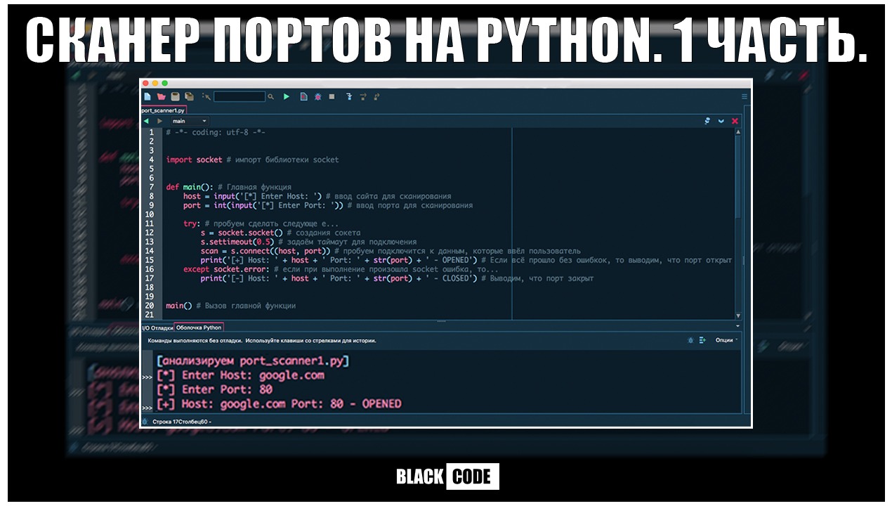 Всем привет! Это канал BLACK CODE. Сегодня мы начнём серию из 3-х статьей по созданию своего сканера портов на Python.