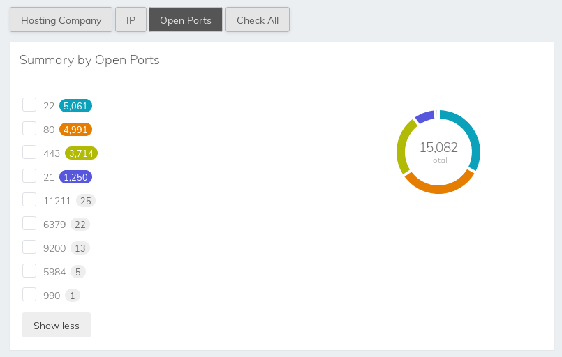 Используя виджет «Сводка данных по открытым портам», вы сможете сэкономить драгоценное время при поиске критической информации о вашей собственной инфраструктуре или при анализе деятельности сторонней компании.