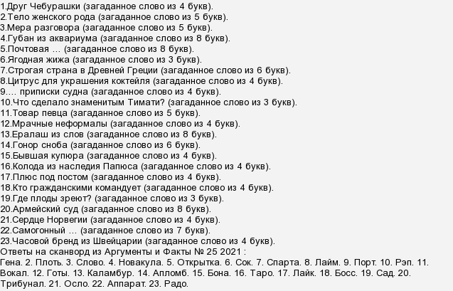 Сканворд аиф 31 за 2025