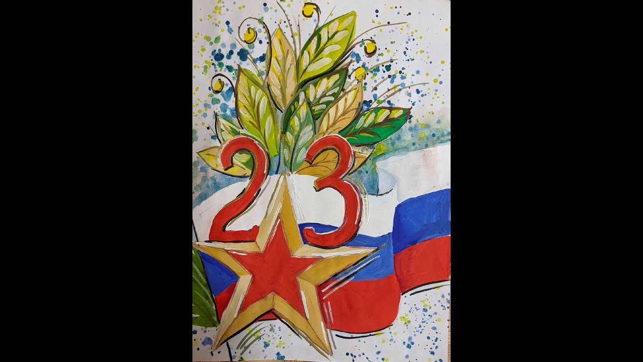 Скетч на 23 февраля маркерами