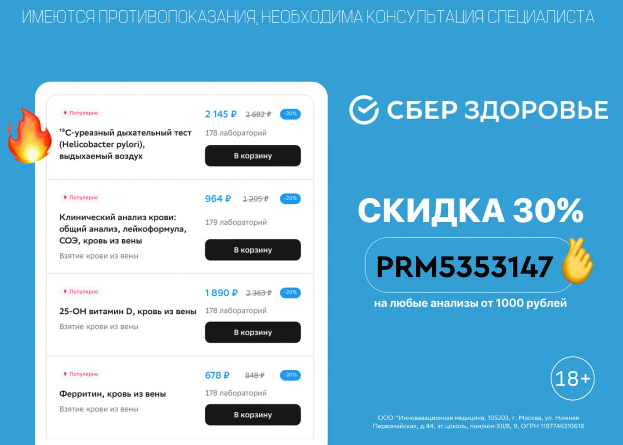 Скидка на сдачу анализов