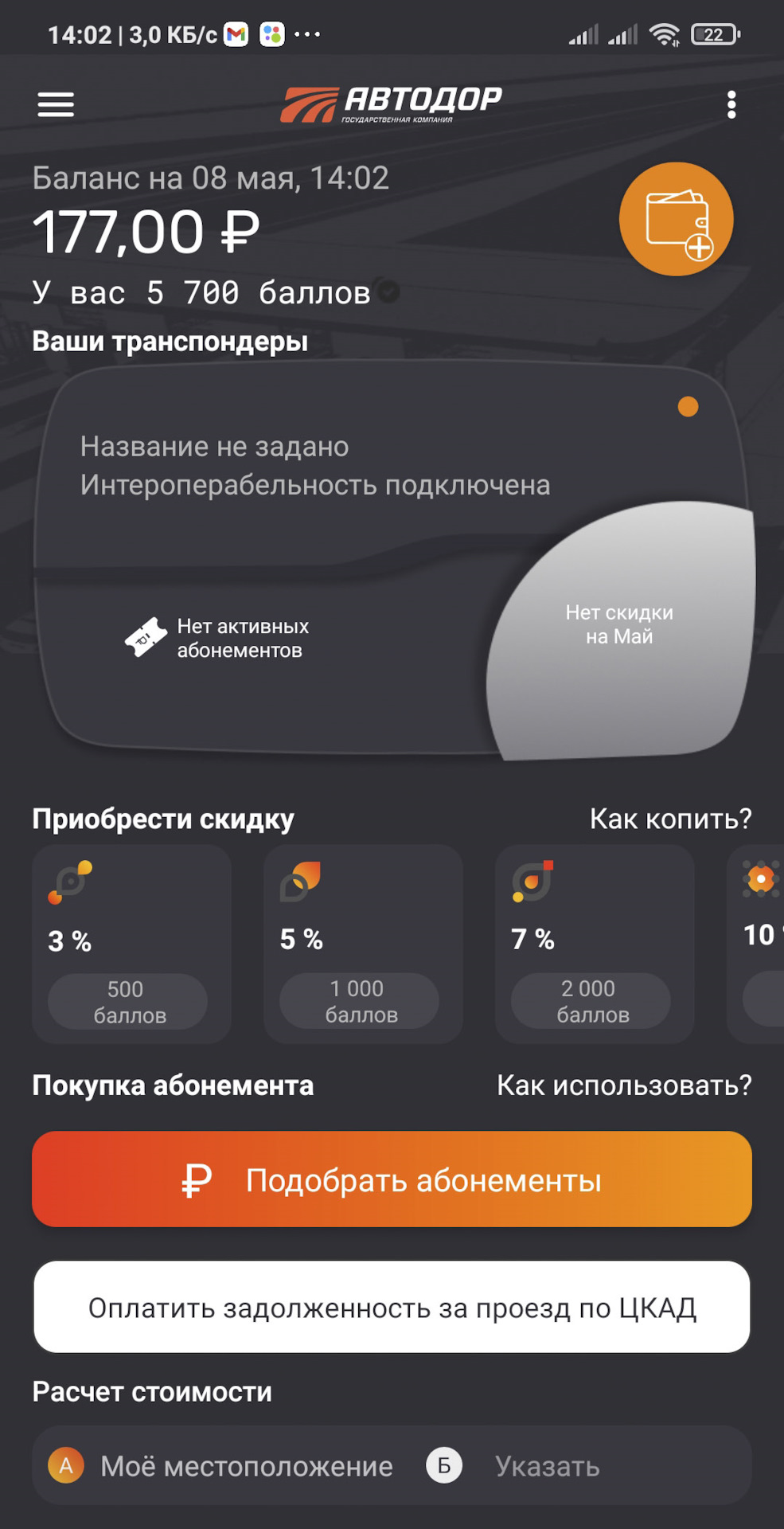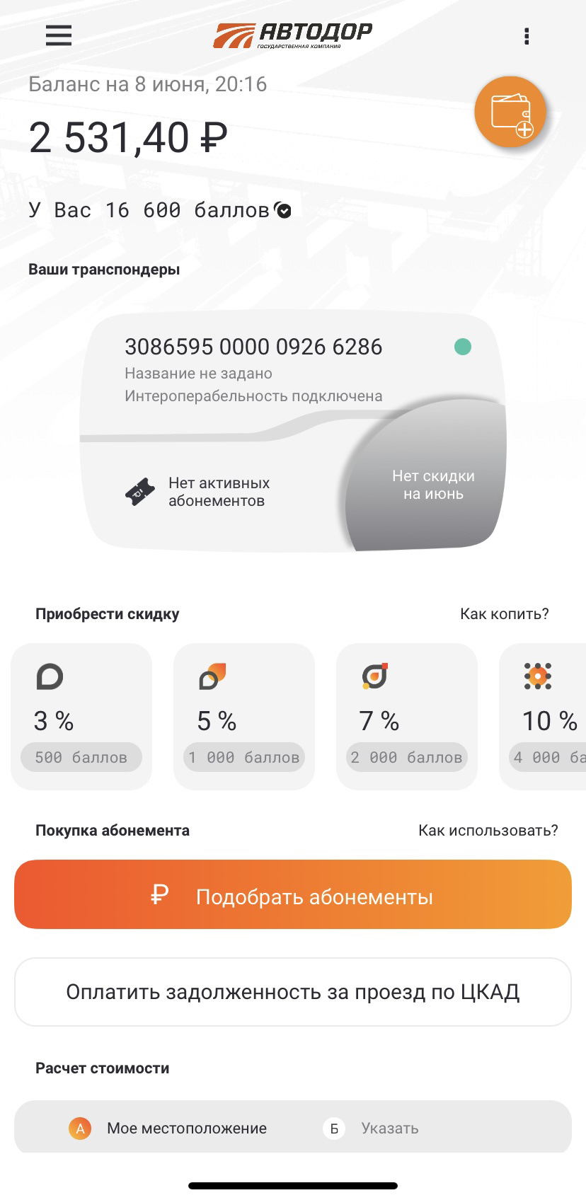 Скидка при оплате транспондером