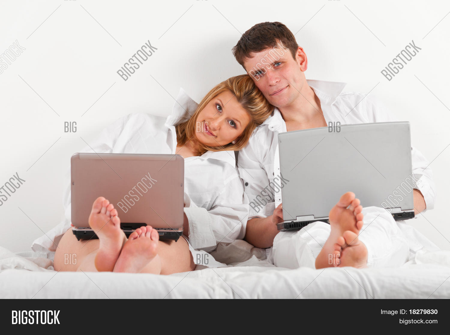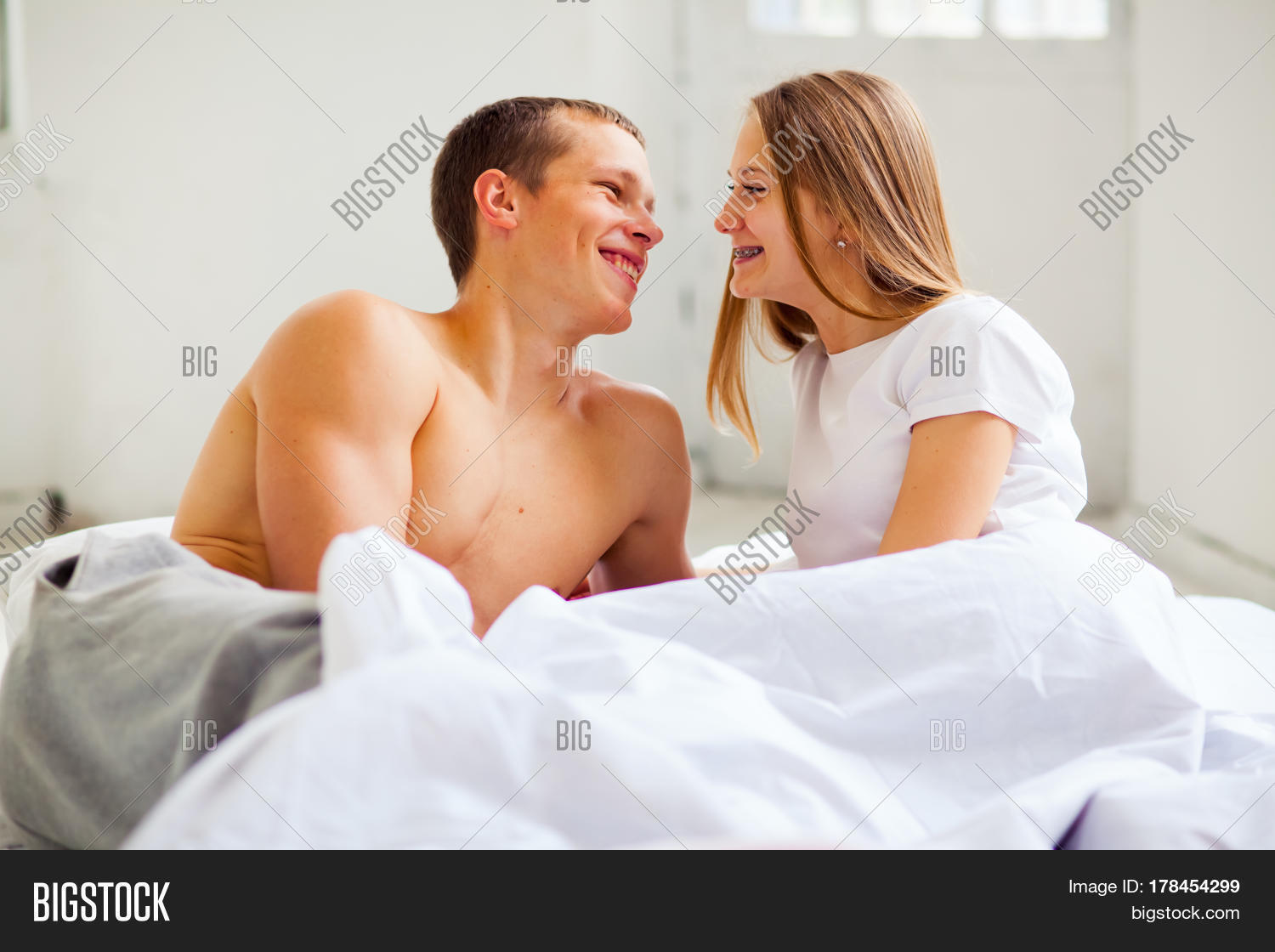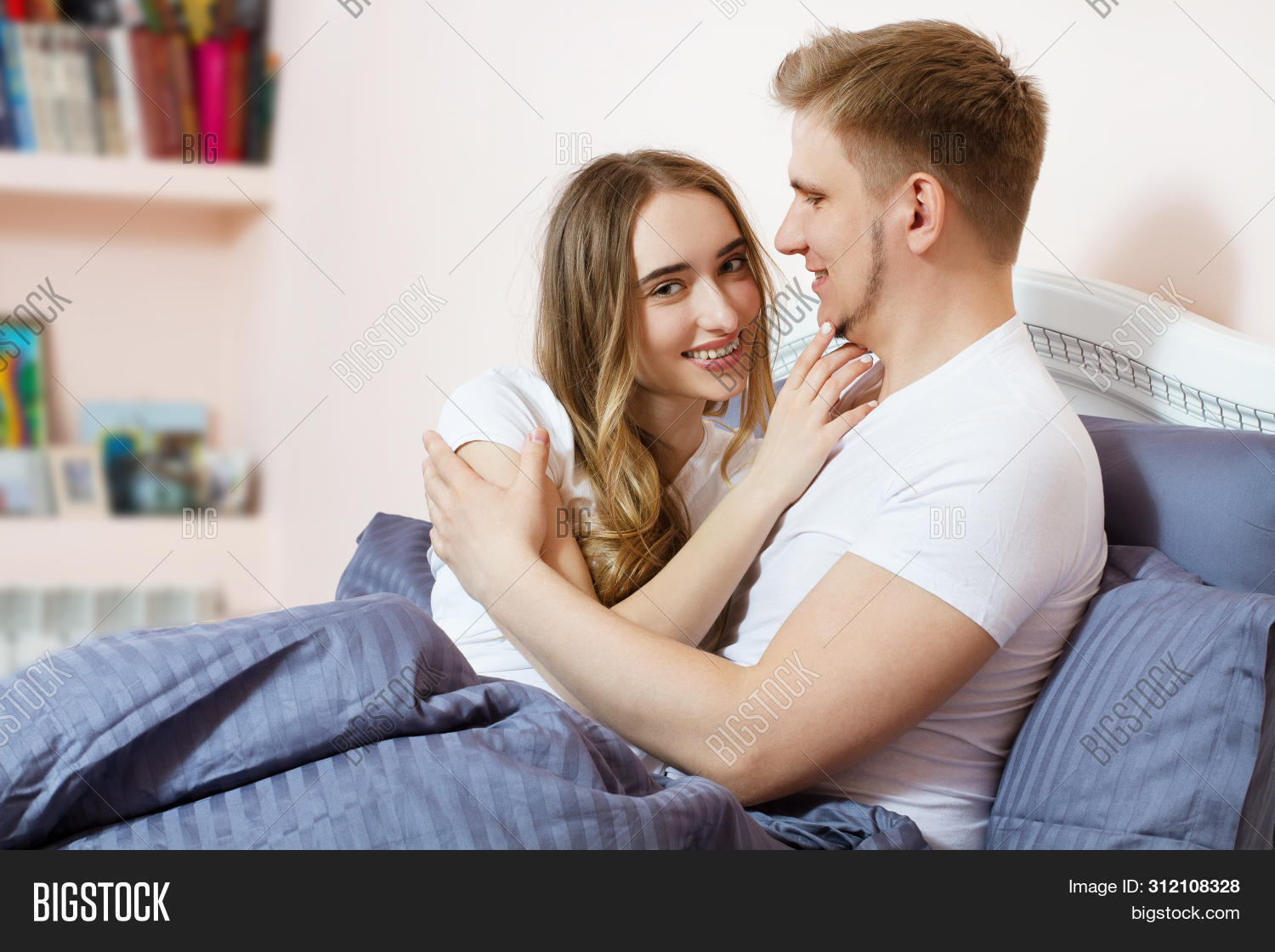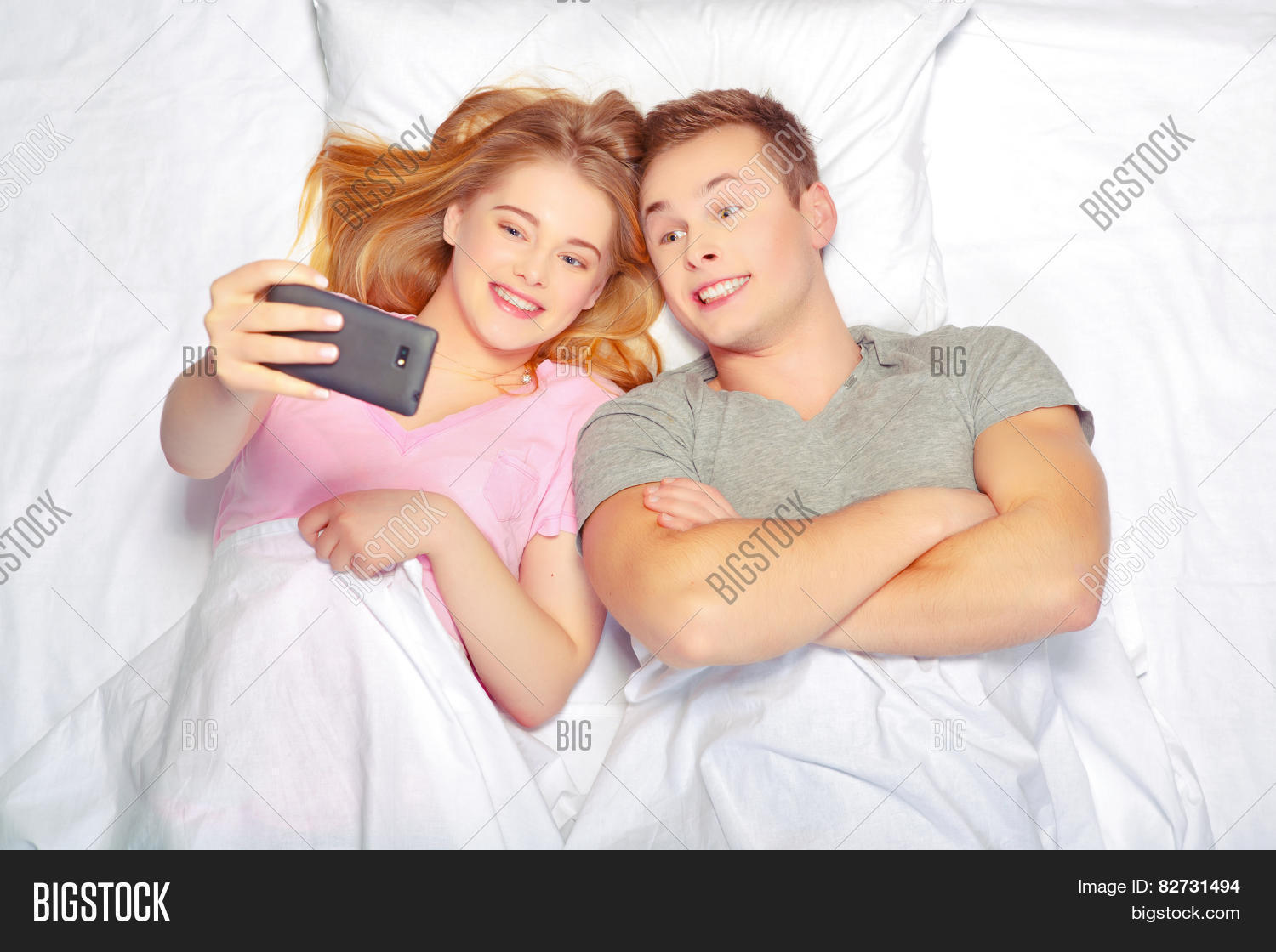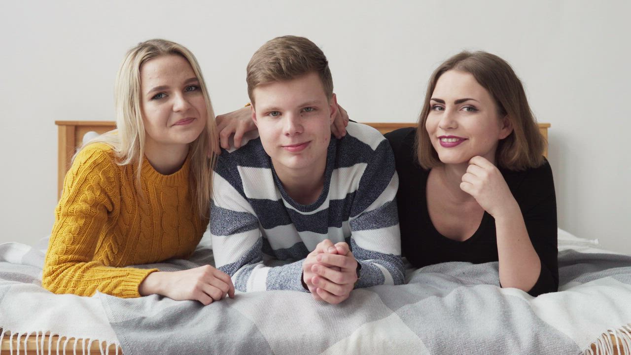 Skinny Blonde Babe on Bed with Two Partners 52 photos