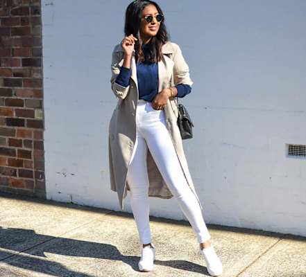 Skinny girl white jeans gets trashed