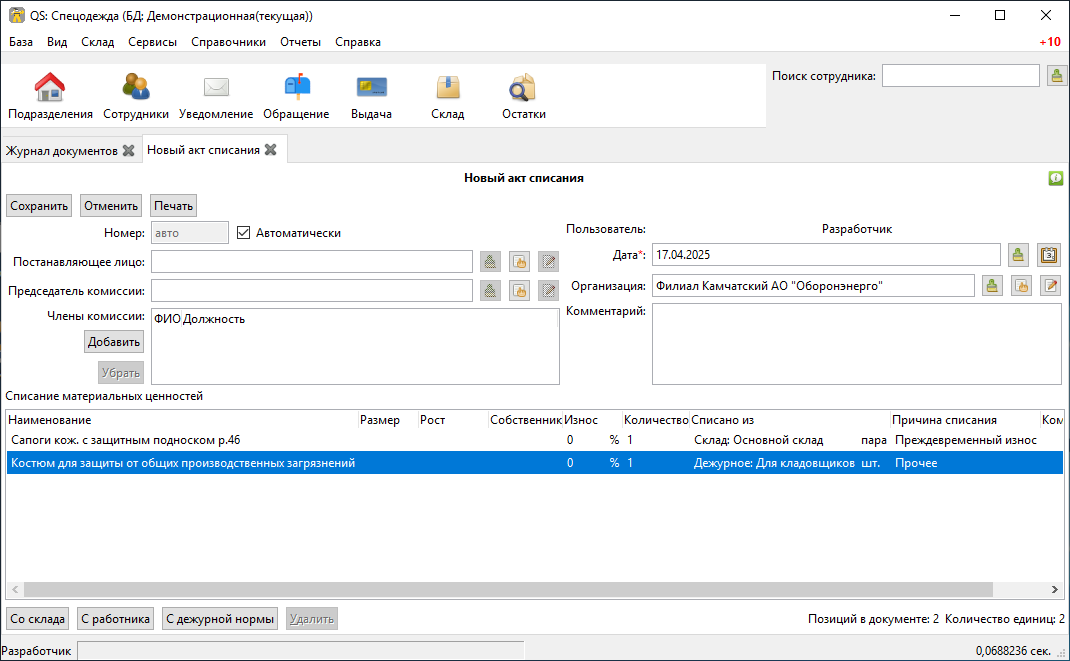 Склад выдачи спецодежды