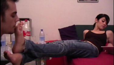 Das brünette Flittchen befriedigt den Fußfetisch