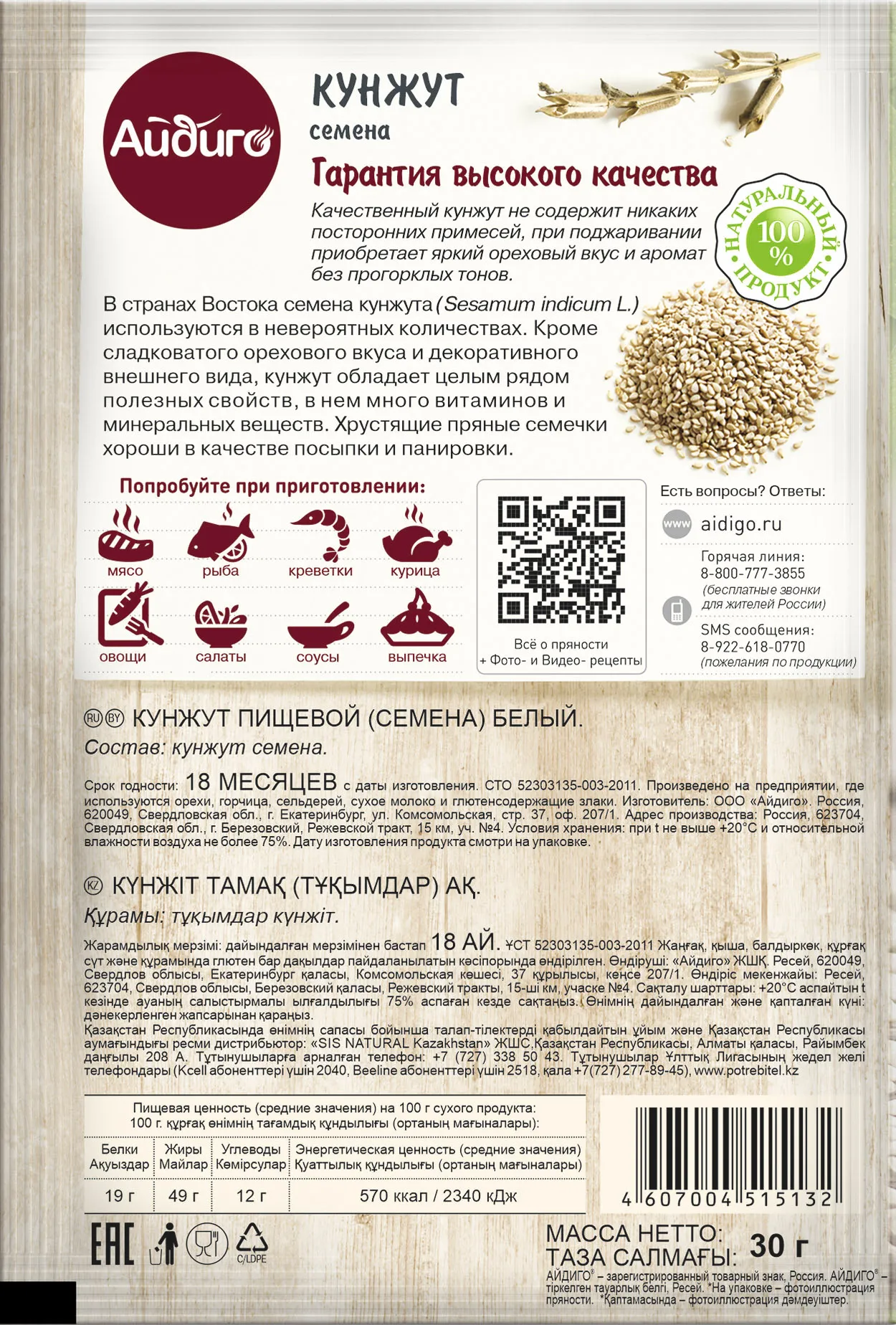 Кунжут - миф о кальции и варианты потребления : Отзыв