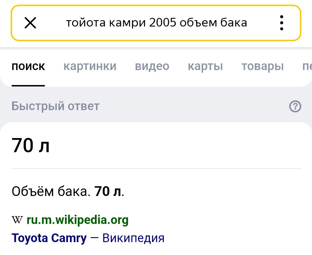 Сколько бак камри 55