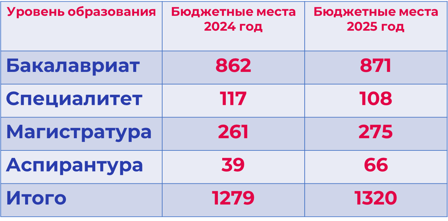 Сколько бюджетных мест в вузах 2025