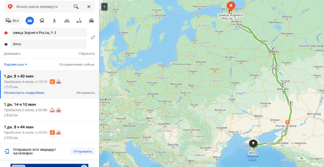 Сколько ехать от москвы до ялты