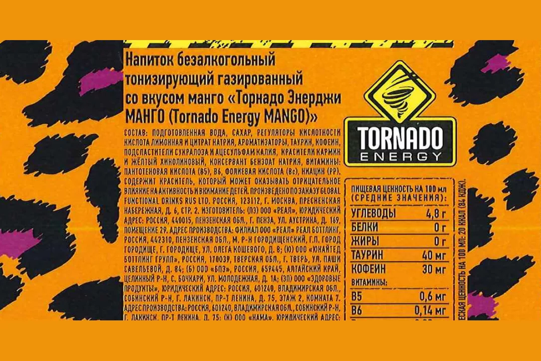 Сколько калорий в торнадо энергетик 83 фотографий