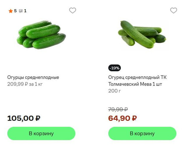 Сколько кк в одном огурце