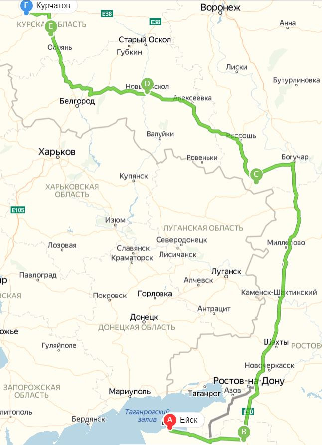 Сколько км от курска до ейска
