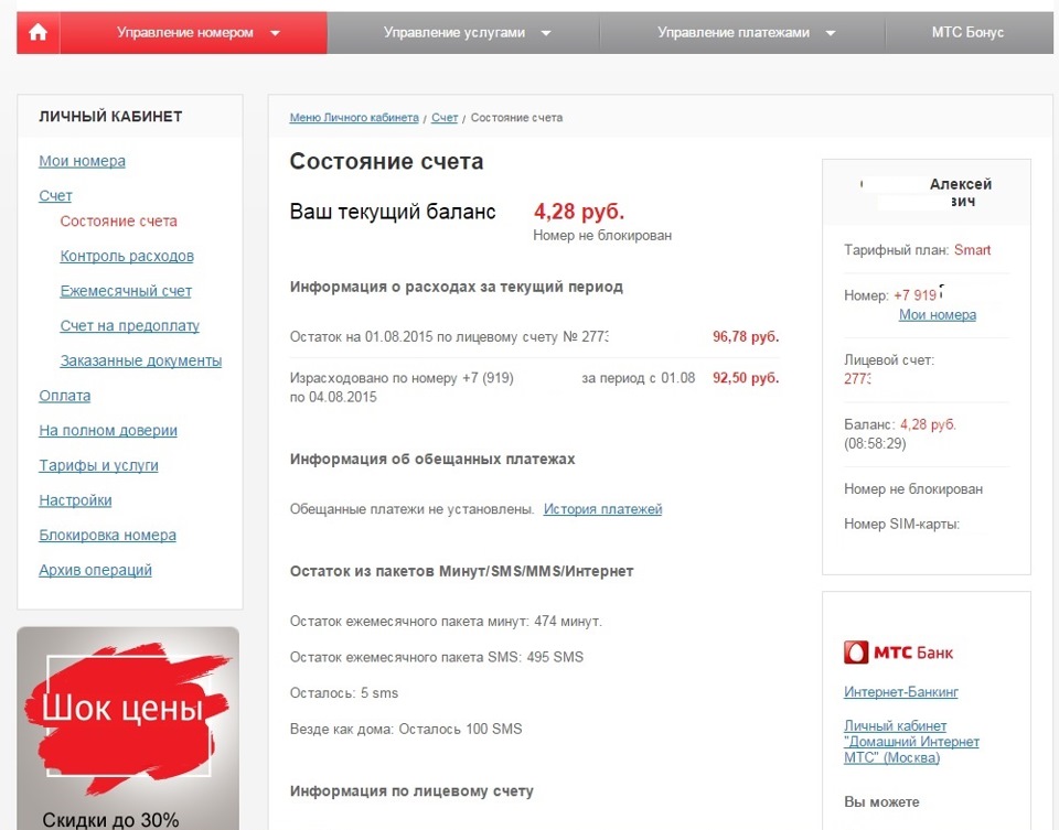 Сколько на счете телефон мтс