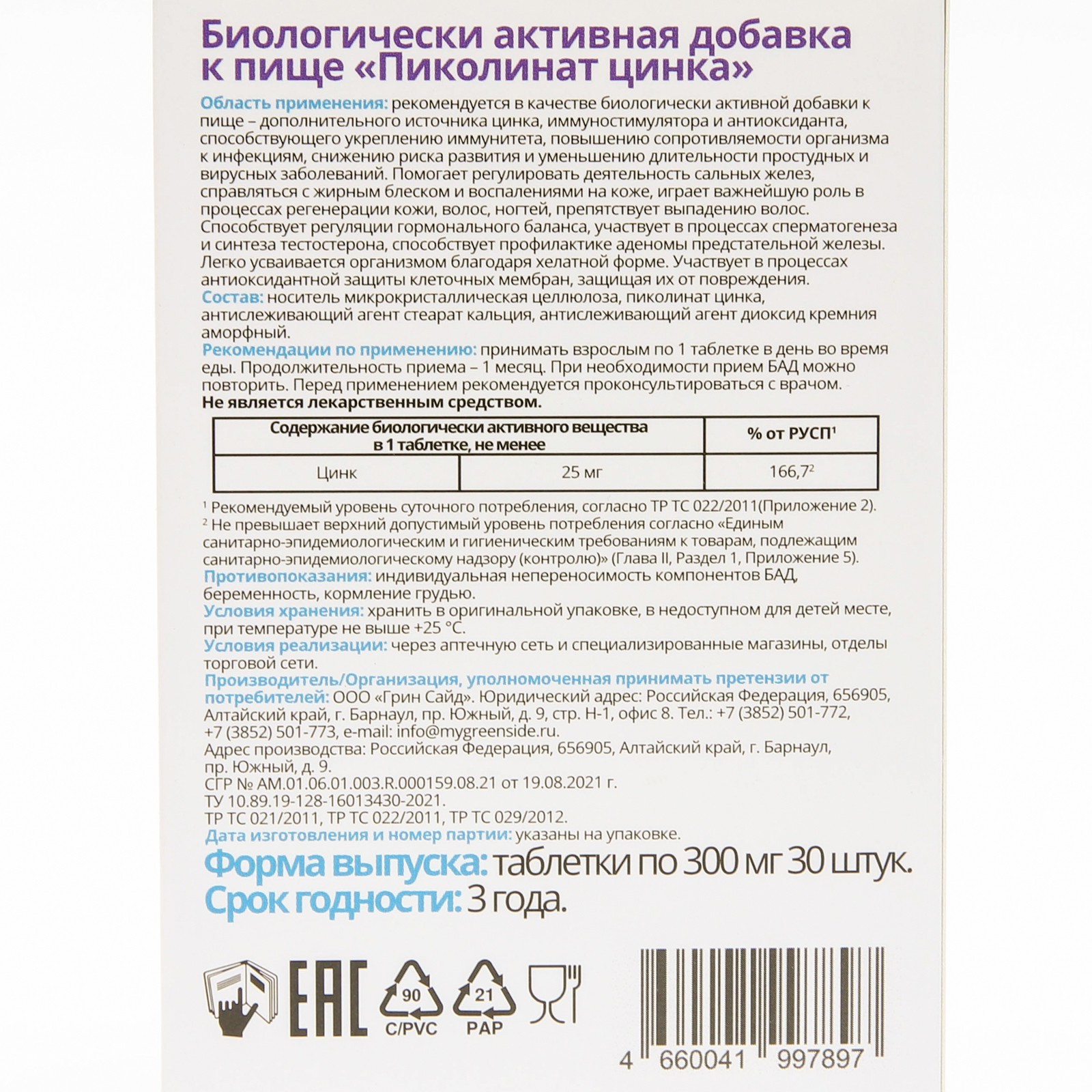 Сколько пить цинк пиколинат