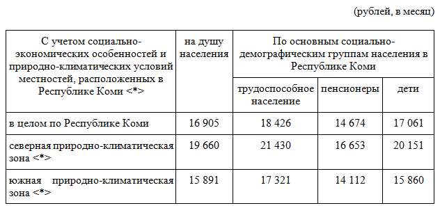 Сколько прожиточный минимум в коми