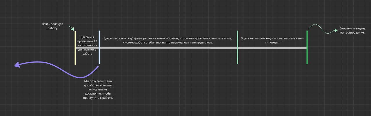 Если посмотреть на таймлайн работы над задачей, то это выглядит примерно так: