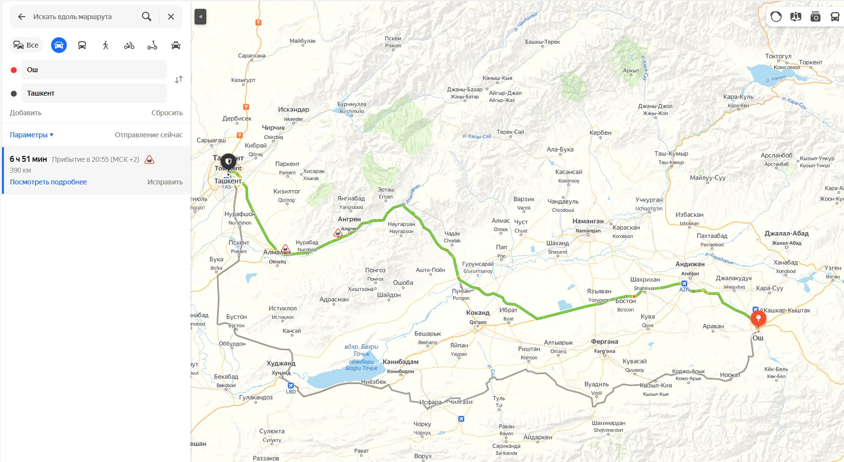 Сколько времени ехать до ташкента