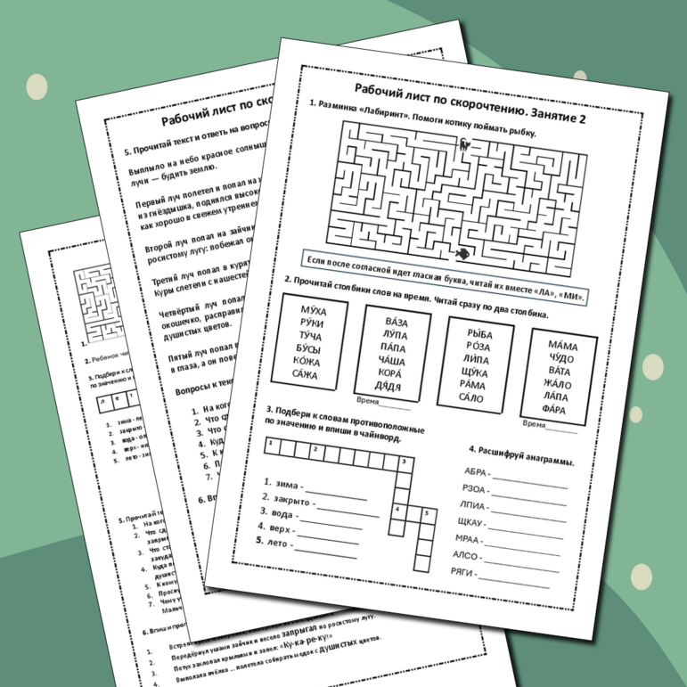 Скорочтение тексты для детей