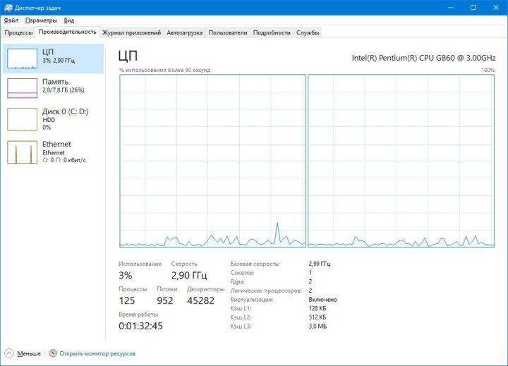 Скорость процессора ограничена системным встроенным по