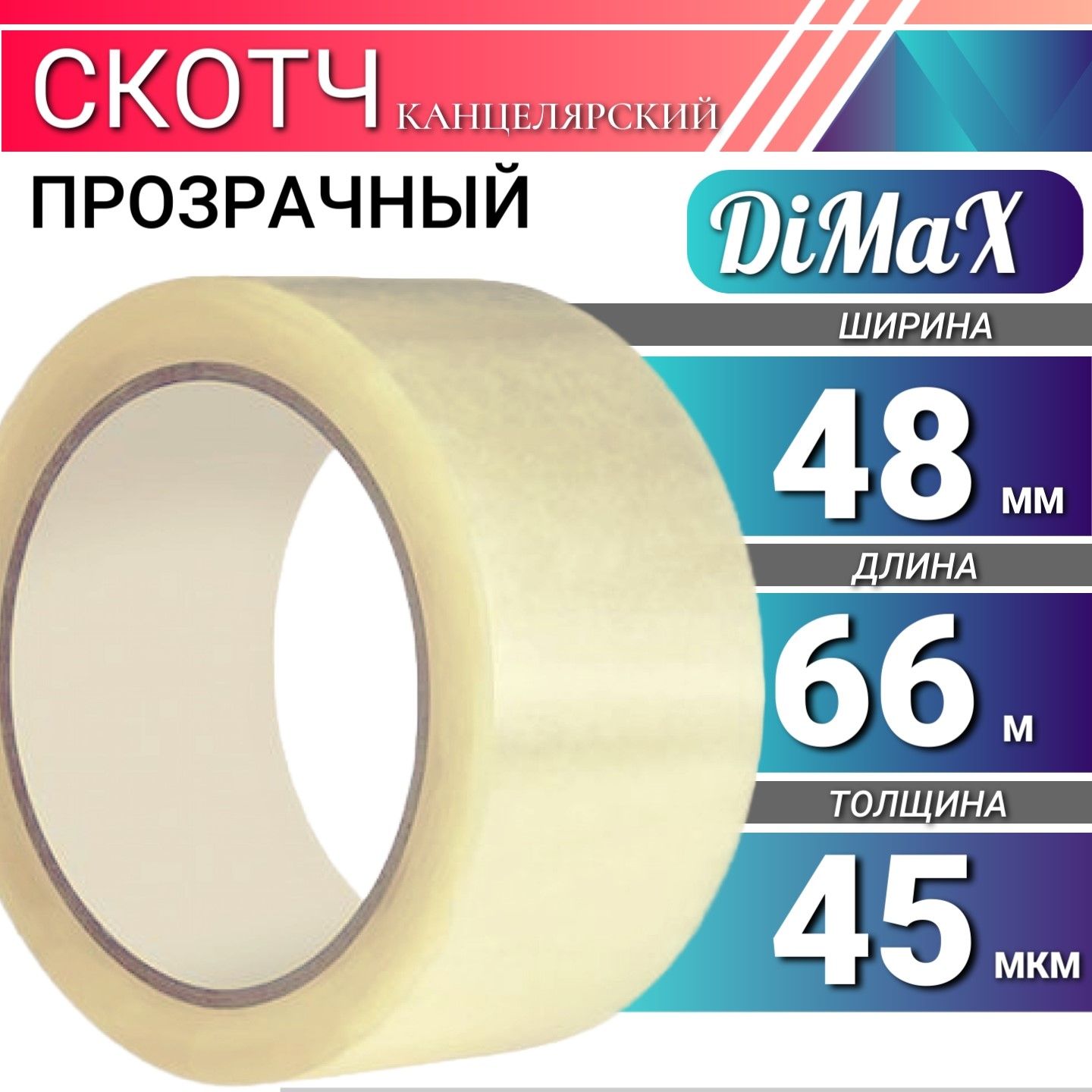 Скотч 45мкм прозрачный