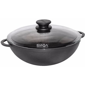ТОП продаж Биол™ СКИДКА ! Сковорода WOK чугунная со стеклянной крышкой со съемной ручкой