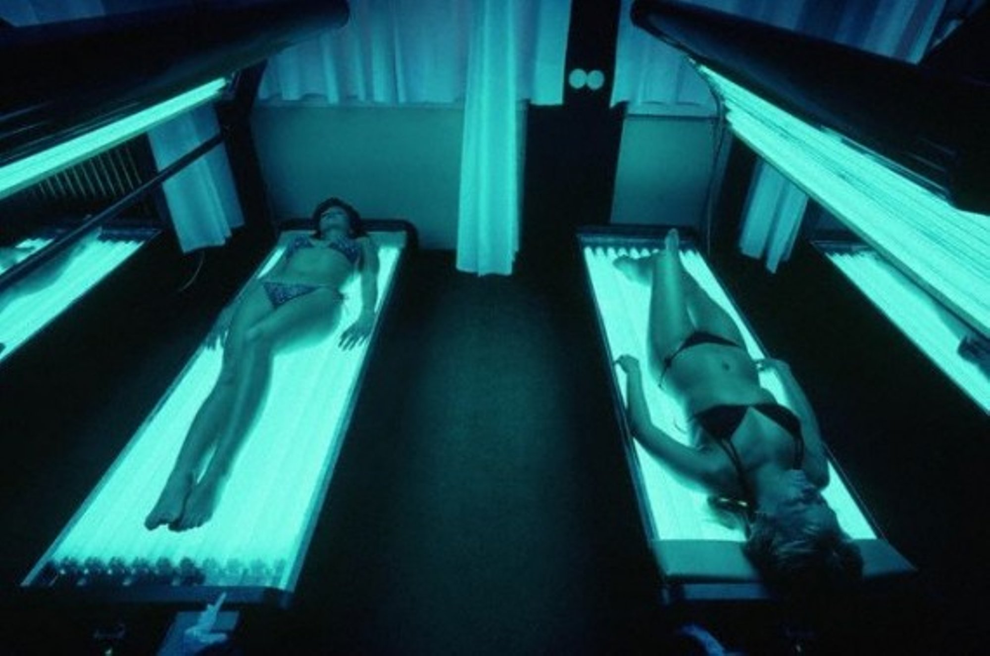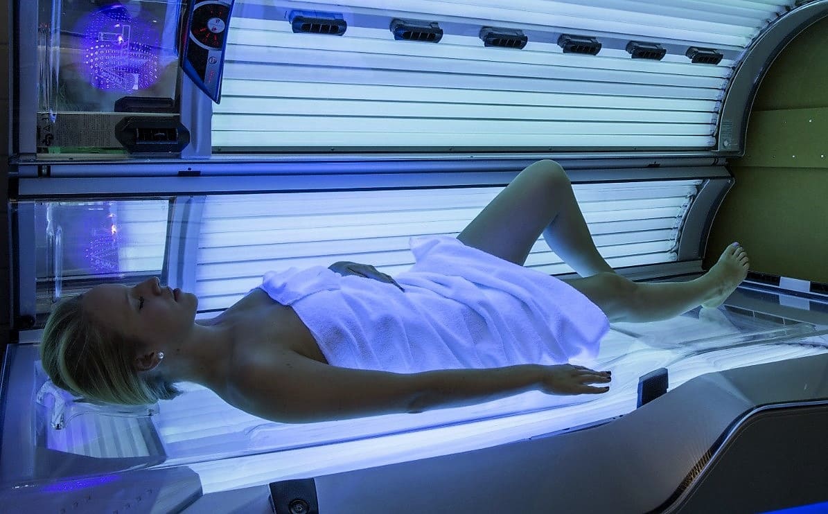 Скрытая камера стоит внутри солярия и записывает видео с голой клиенткой