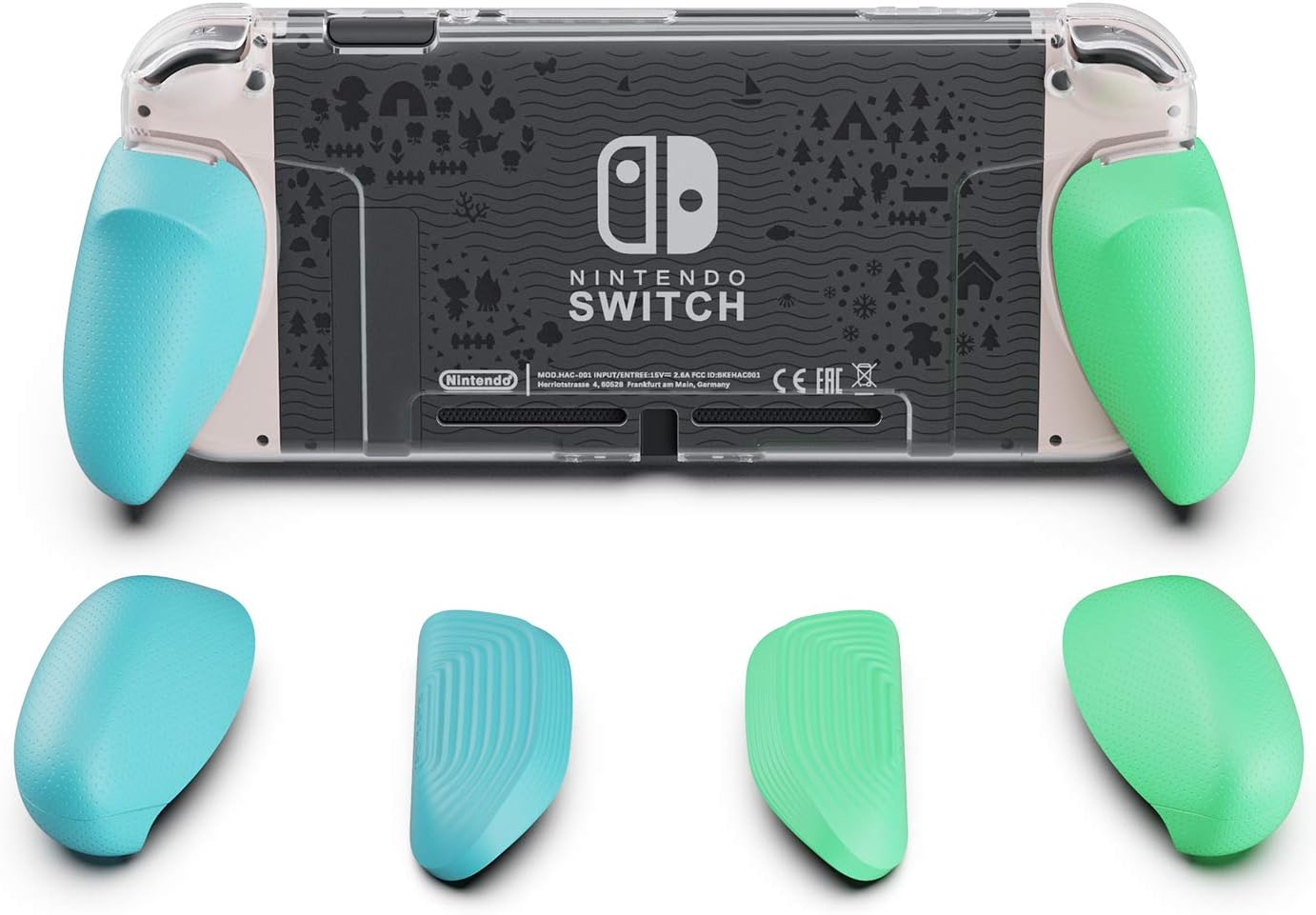 2-in-1 design: an ergonomic grip + a protective case . Interchangeable grips to fit all hand sizes . Various grip colors to match your Joy-Cons . Slider design, much easier to switch grips . Transparent body, show off your themed SWITCH Enlarged ZL/ZR buttons provide better control Solid Protection . Dock friendly .