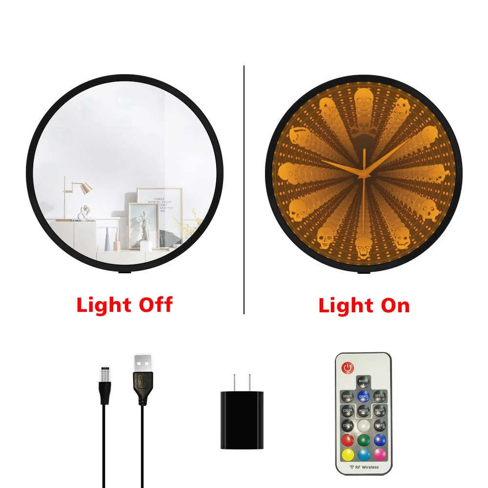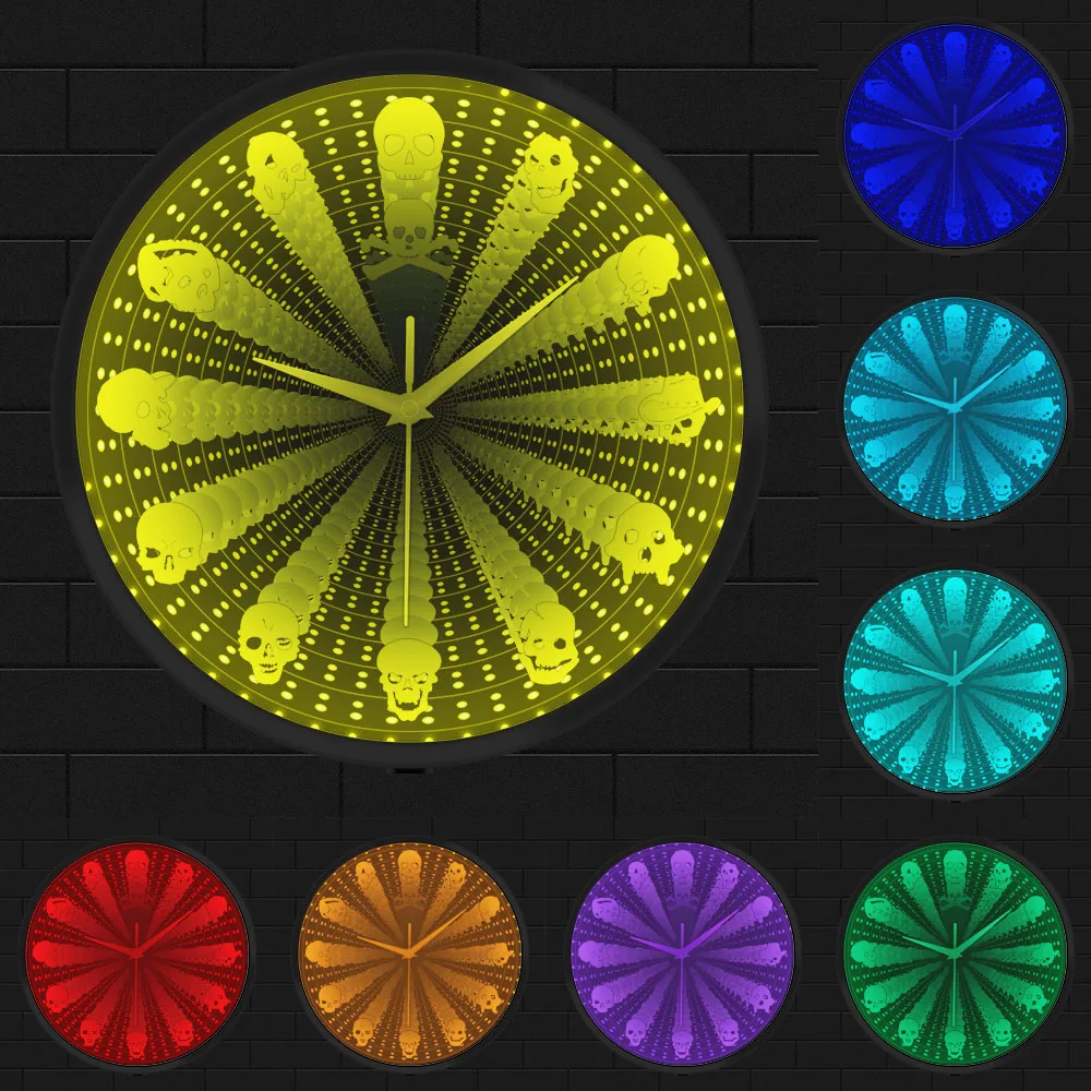 "Skull Head LED Mirror Vortex Tunnel Interstellar Wall Clock Skeleton Head Infinite Reflections Watch Halloween Home Horror Decor" * Buy Now With Free Shipping Just For $54