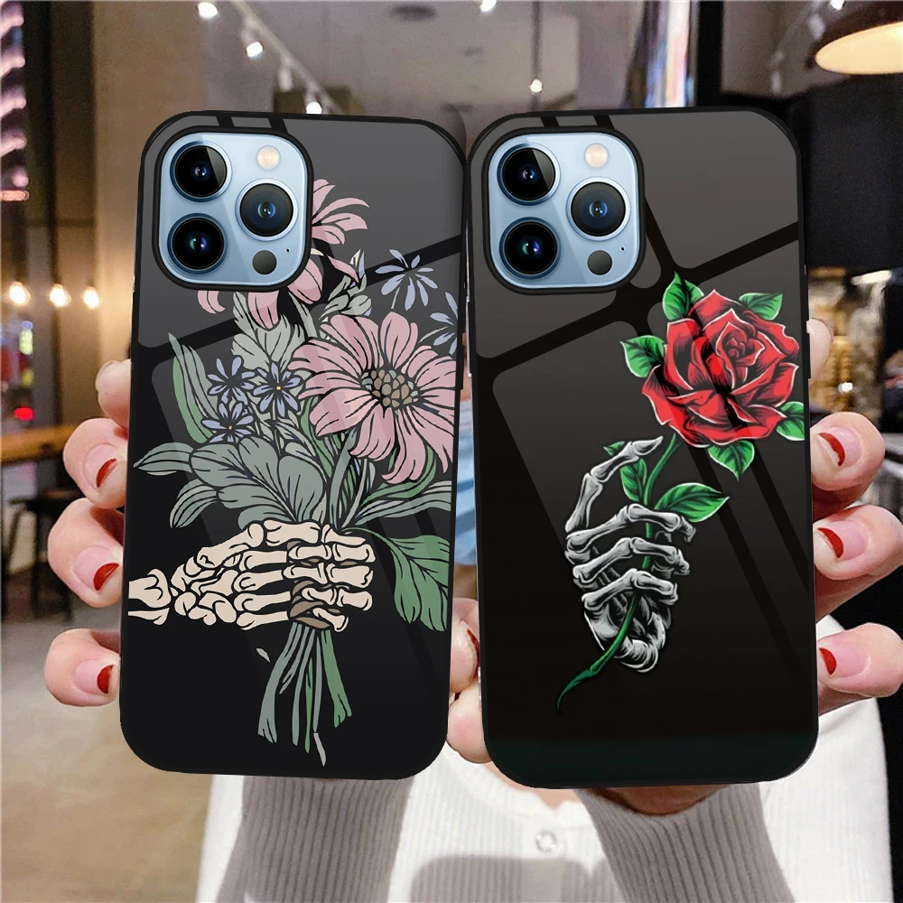 «Skull Rose Floral Case for iPhone 14 13 12 11 Pro Max Mini XS XR X 7 8 6S Plus SE 2022 Luxury Tempered Glass Cover Bumper Fundas» по лучшей цене на рынке! Всего за 4$ (380рублей)