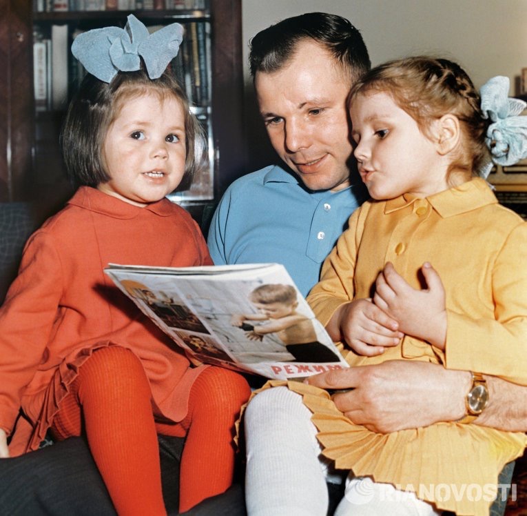 Юрий Гагарин и дочки. Галя и Лена. СССР. 1960-е.