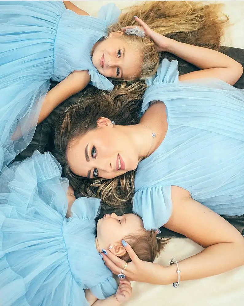 «Sky Blue Tulle Mum and Daughter Matching Outfit for First Birthday Party Mommy and Me Dress New Year Photos Evening Prom Gown» по лучшей цене на рынке! Всего за 69$ (6555рублей)