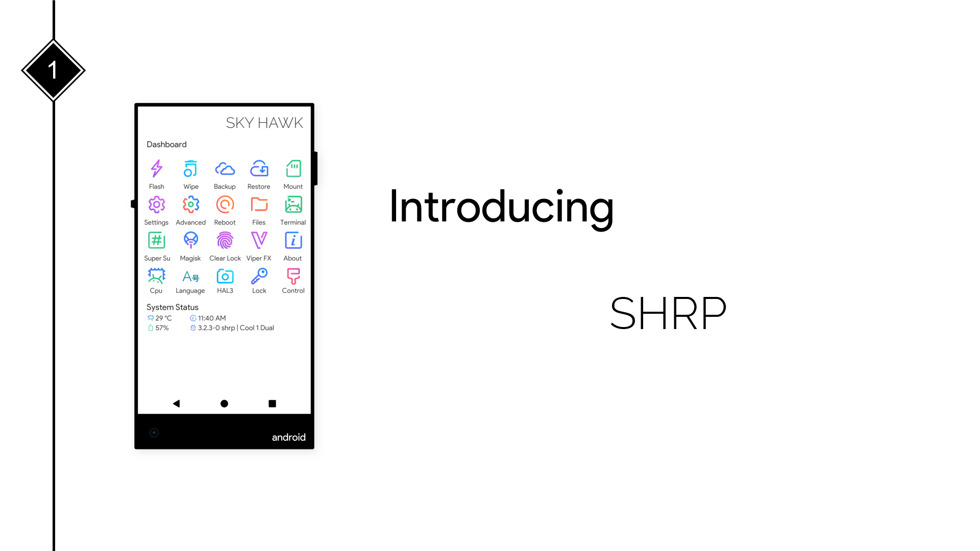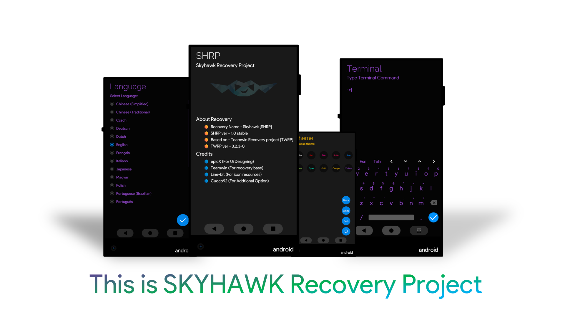 SkyHawk Recovery Project [SHRP]IndraskrA minimal version of TWRP by the concept of Material Design 2.Downloads : (Will be added soon)Screenshots :Project By : EpicXCredits : (Will be added soon)FAQs :