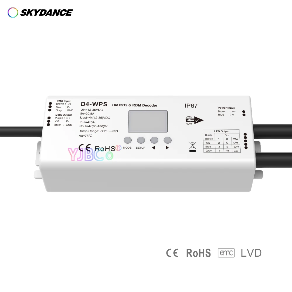 YlnXgzSbVZHere you can buy Skydance Waterproof 4 Channel Constant Voltage DMX512 Decoder RDM RGBW LED strip controller 12V-36V 24V 4CH*5A/CH DMX dimmer with free delivery to your post office.