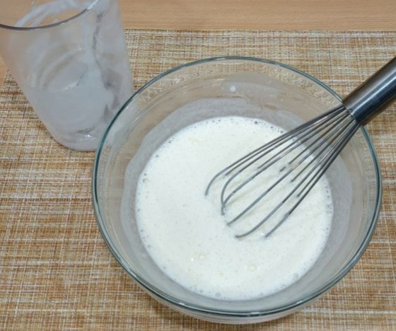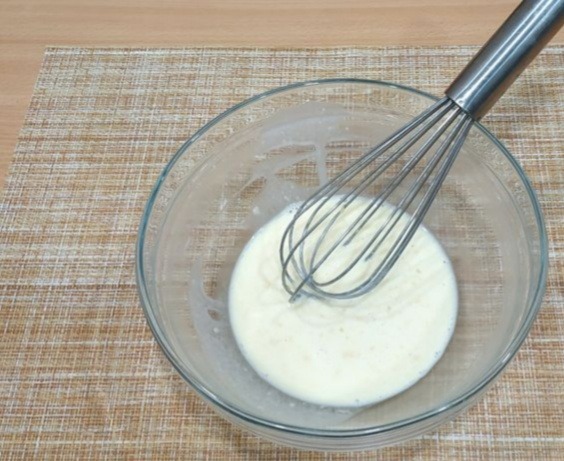 Влейте молоко и ещё раз перемешайте смесь, чтобы не осталось комочков.
